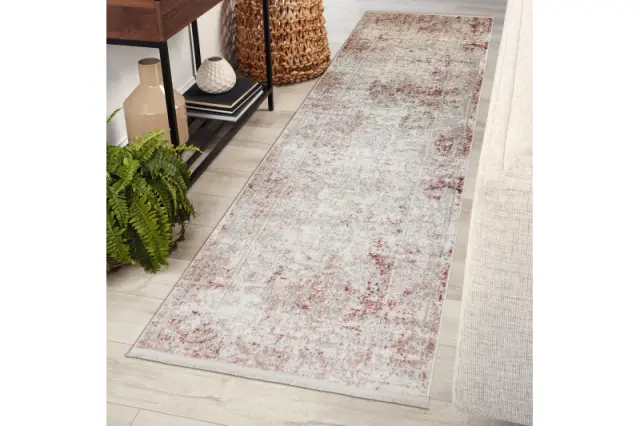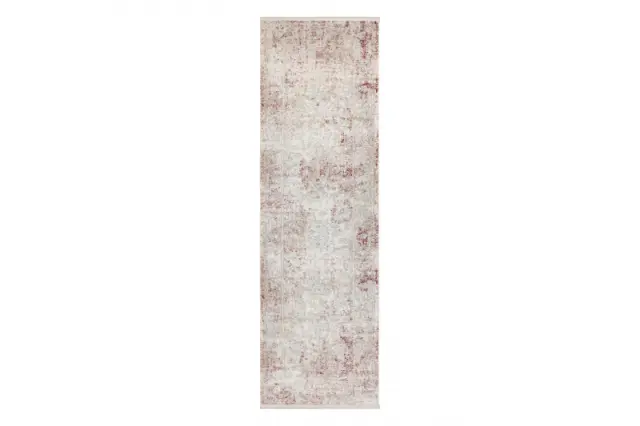 DISTIN 0828A roza / prah / bela moderna preproga, tekač - Abstrakcija, vintage, resice 80x200 cm