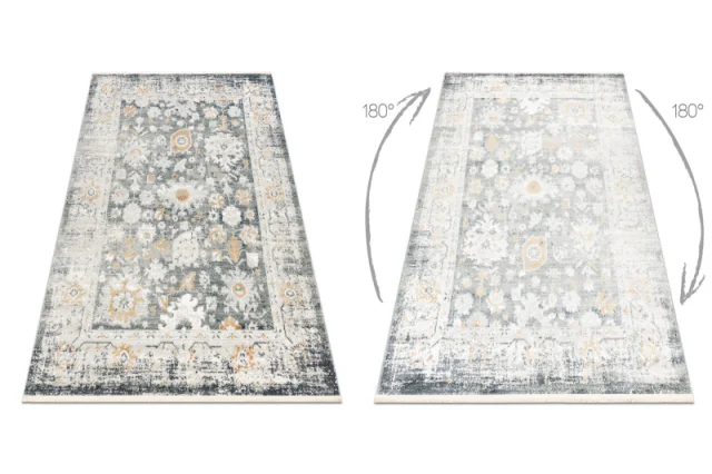 DISTIN 0835A siva / svetlo siva / bela moderna preproga - Ornament, okvir, vintage, resice 180x270 cm