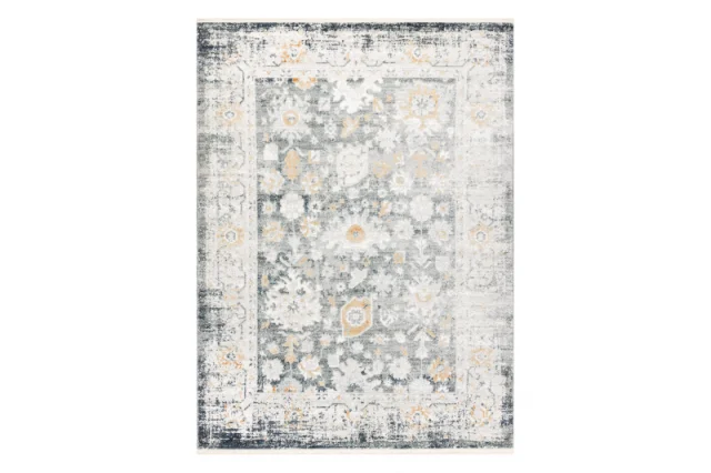 DISTIN 0835A siva / svetlo siva / bela moderna preproga - Ornament, okvir, vintage, resice 80x150 cm