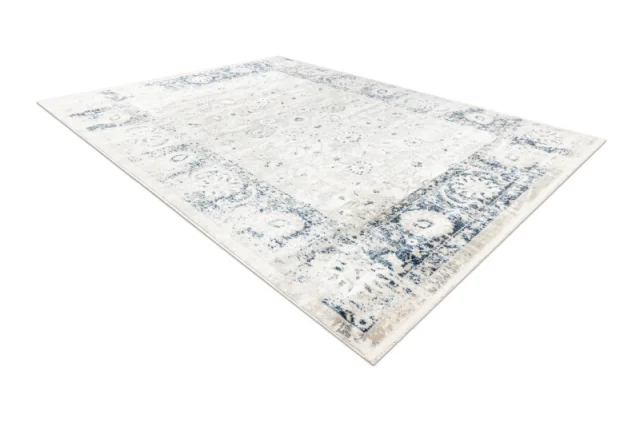DISTIN 0843A bela / mornarsko modra / modra moderna preproga - Ornament, okvir, vintage, resice 120x170 cm