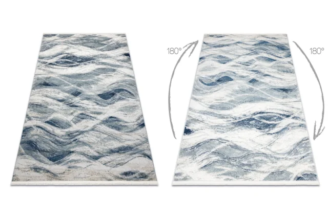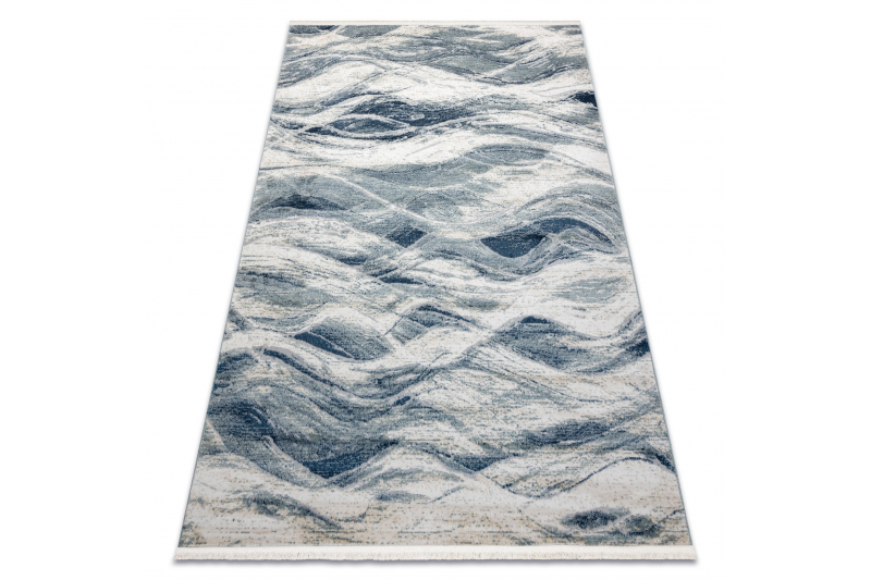 DISTIN 0849A mornarsko modra / modra / bela moderna preproga - Valovi, vintage, resice 120x170 cm