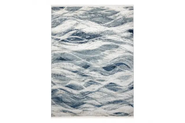DISTIN 0849A mornarsko modra / modra / bela moderna preproga - Valovi, vintage, resice 200x290 cm