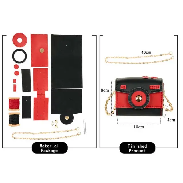 DIY Materialni Paket za Mini Fotoaparat Torbico iz PU Usnja Black+Red