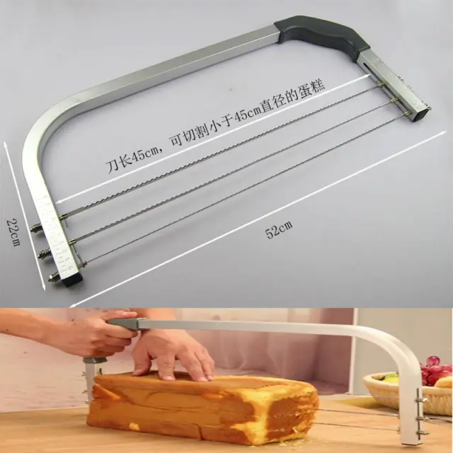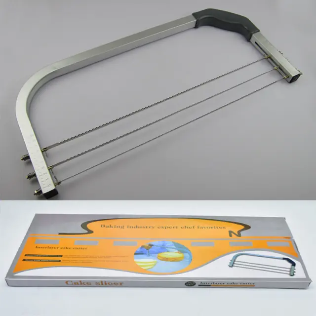 Enostavna uporaba: Ta rezalnik za torte je zasnovan za začetnike in izkušene peke in je neverjetno enostaven za uporabo. Preprosto nastavite žico na želeno višino in z lahkoto prerežite torto. Ergonomski ročaj zagotavlja udoben oprijem, zaradi česar je postopek gladek in enostaven. Zapletena nastavitev ali posebna znanja niso potrebna. Uživajte v brezskrbni peki in ustvarite osupljive torte z minimalnim trudom. Zaradi intuitivne zasnove je dragocen dodatek k vsakemu pekovskemu kompletu orodij.