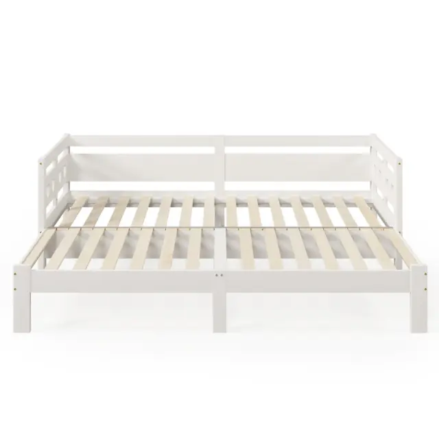 Dnevna postelja Daybett, 90x200 cm, masivni bor, izvlečna z drugim ležiščem, letveni okvir, bela