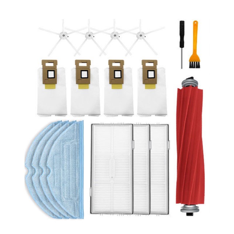 Dodatki za Xiaomi Roborock S7 / T7S / T7S Plus / G10. Rezervni deli se hitro in enostavno menjajo. Komplet vsebuje vse, kar potrebujete za vzdrževanje vašega robotskega sesalnika v dobrem stanju: gumijasto krtačo, stranske krtače, krpe za brisanje, HEPA filter in vrečke za sesalnik.