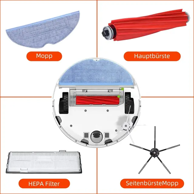 Vsi pomembni dodatki v enem kompletu: Komplet vsebuje 2 glavni krtači in več stranskih krtač, filtre in krpe za brisanje, ki se optimalno prilegajo in jih je enostavno zamenjati.