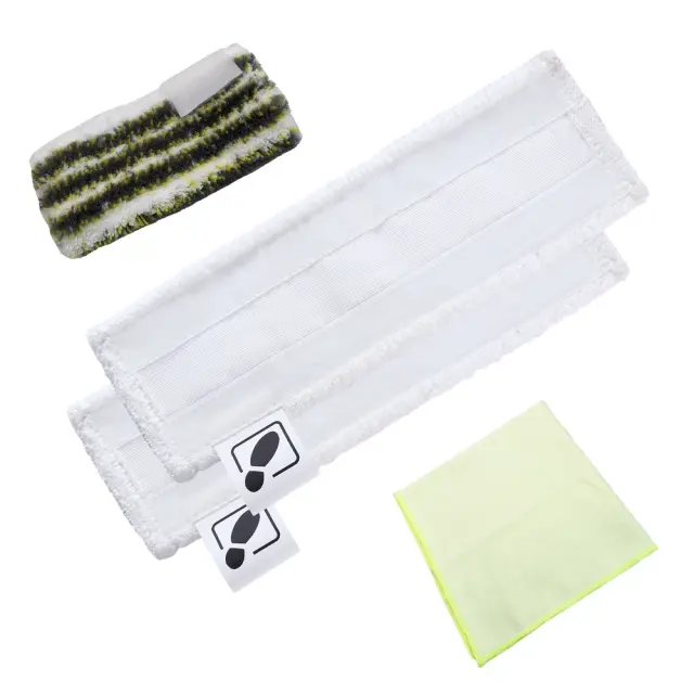 Primerno za parne čistilnike Kärcher: Ta komplet je zasnovan posebej za uporabo s parnimi čistilniki Kärcher SC1, SC2, SC3, SC4 in SC5. Paket vsebuje parno krpo, dve blazinici za brisanje tal in super vpojno čistilno krpo, zaradi česar je vsestranski in nepogrešljiv komplet pripomočkov za čiščenje.