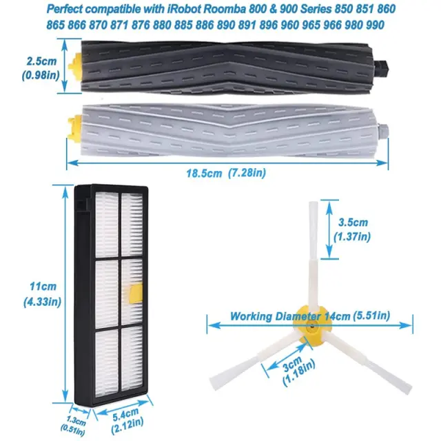 Združljivo z: iRobot Roomba 800/850/851/860/865/866/870/871/876/880/885/886/890/891/896/960/966/980/990.