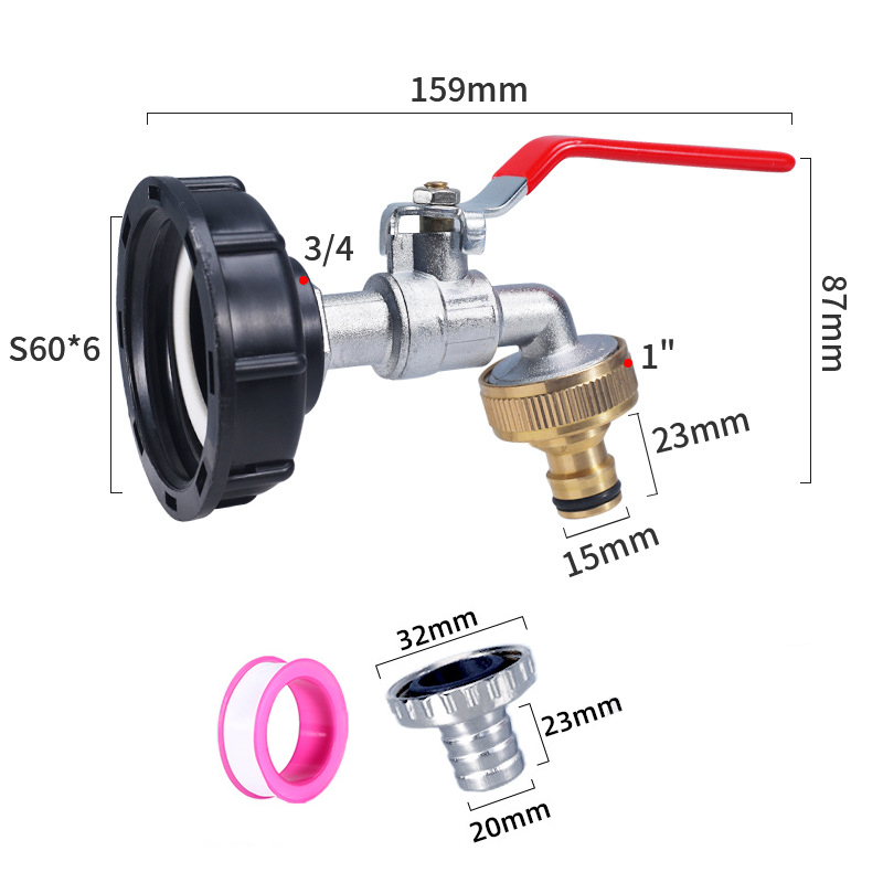 Dodatki za rezervoar IBC Pipa iz zlitine z medeninastim adapterjem za pipo 3/4-palčna aluminijasta pipa