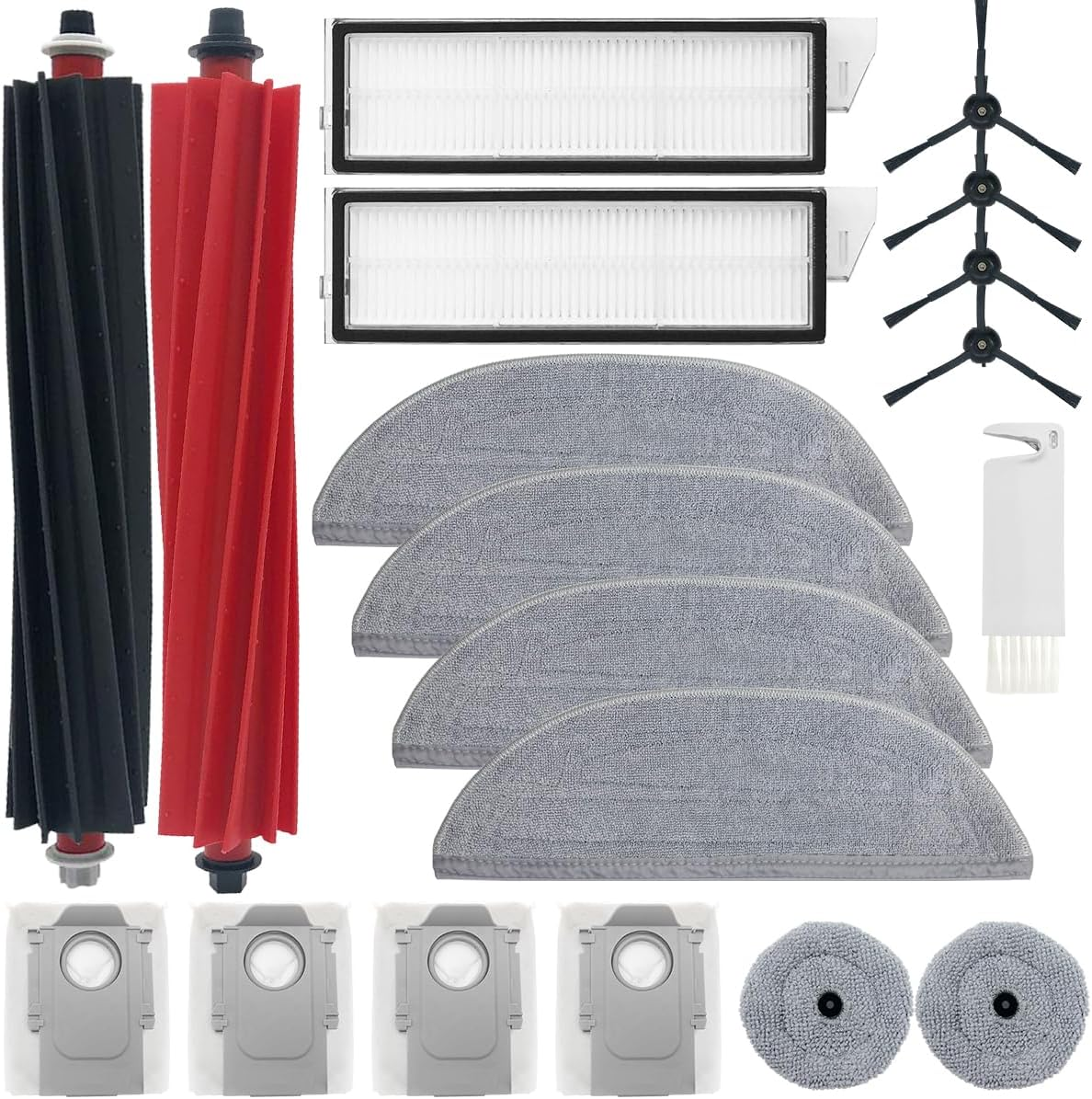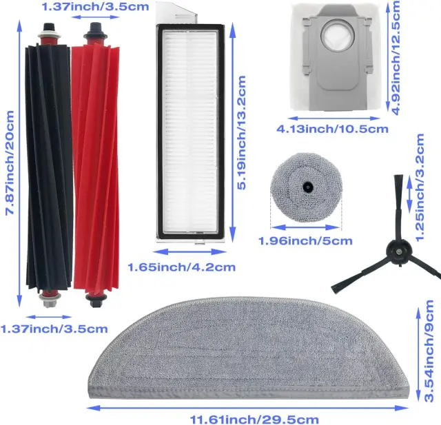 Velik komplet dodatkov: Ta komplet vsebuje skupaj 19 rezervnih delov, ki ustrezajo Roborock S8 MaxV Ultra - glavne krtače, HEPA filtri, različne blazinice za brisanje, vrečke za sesalnik, stranske krtače in čistilna krtača. Dodatki nudijo optimalno združljivost in zmogljivost za mokro in suho čiščenje.