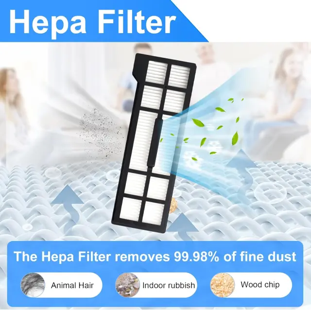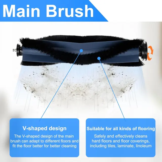Izboljšana učinkovitost čiščenja: Ta paket dodatne opreme je zasnovan za maksimalno učinkovitost čiščenja vašega robotskega sesalnika. Z novo glavno krtačo, visokozmogljivimi zračnimi filtri in stranskimi krtačami učinkovito odstranjuje prah, umazanijo in dlako z različnih površin.