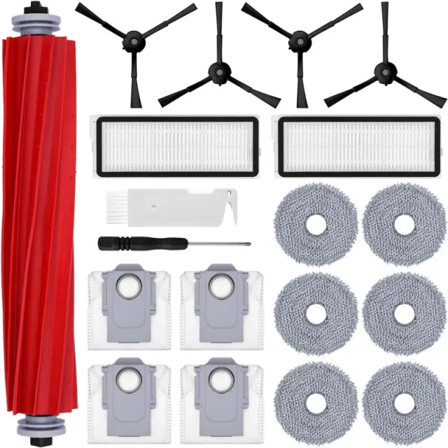 Obsežen komplet: Komplet vsebuje vse, kar potrebujete za ohranjanje visoke zmogljivosti vašega robotskega sesalnika. Z glavno krtačo, stranskimi krtačami, filtri, vrečkami za prah in krpami za brisanje imate vse potrebne dele za temeljito in učinkovito čiščenje.