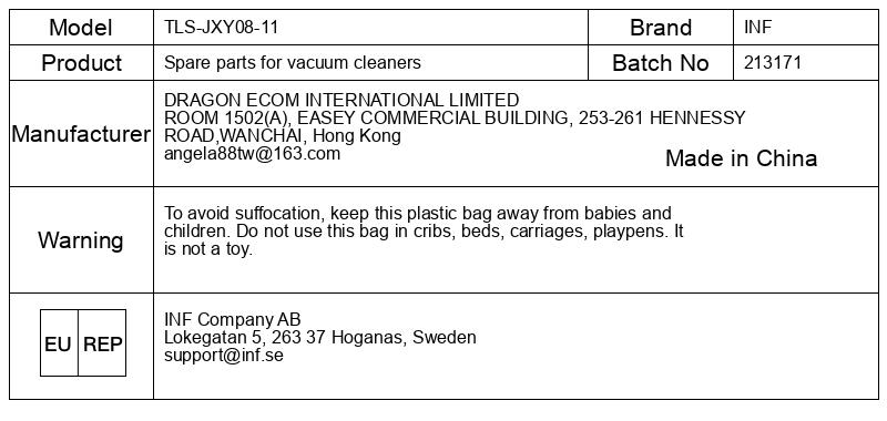 Da se izognete zadušitvi, hranite to plastično vrečko stran od dojenčkov in otrok. Te vrečke ne uporabljajte v zibelkah, posteljah, vozičkih, stajicah. To ni igrača.