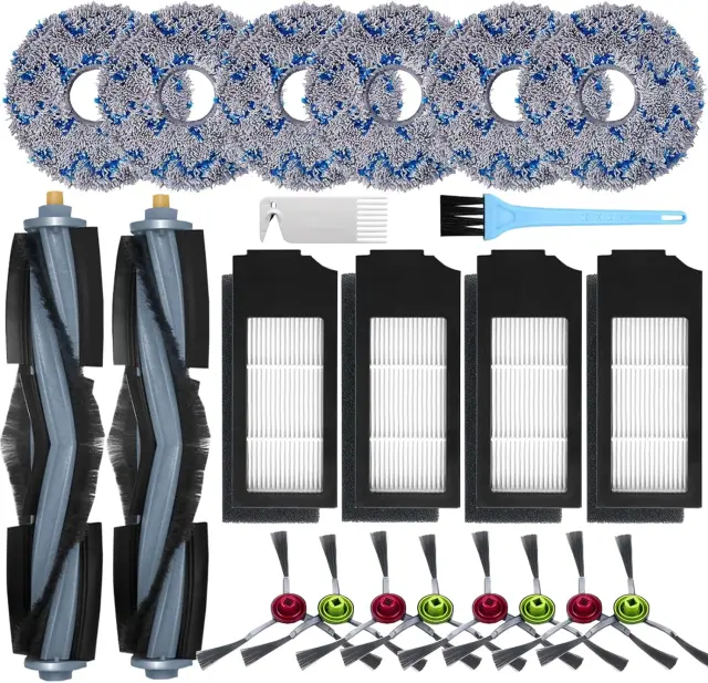 Obsežen komplet dodatne opreme: Vključuje vse, kar potrebujete za vzdrževanje vašega DEEBOT X1 v najboljšem stanju: 2 glavni krtači, 4 HEPA filtri, 8 stranskih krtač, 6 krp za brisanje in 3 čistilne krtače.