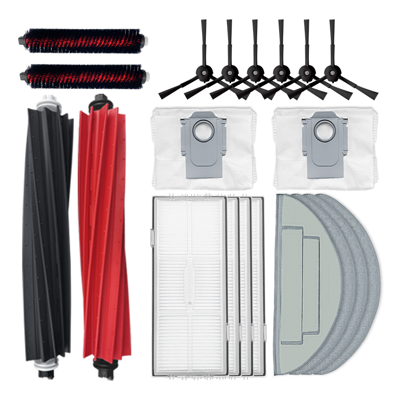 Krtače in filtri za Xiaomi Roborock: paket vključuje 4 glavne krtače, 4 stranske krtače, 2 mopa, 2 vrečki za sesalnik in 2 HEPA filtra, vse združljivo s Xiaomi Roborock S8/S8+/S8 Plus.