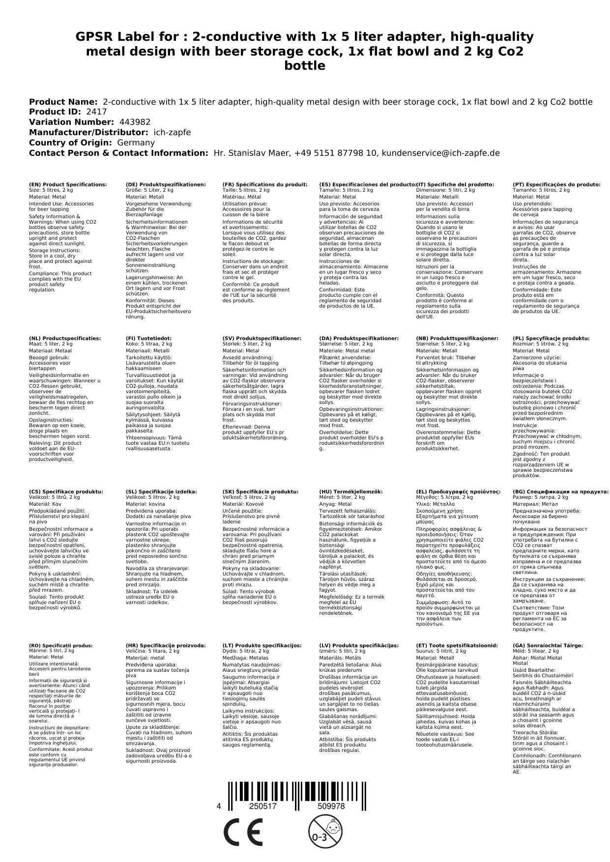Visokokakovostna kovinska izvedba zagotavlja trajnost in privlačen videz. Komplet je enostaven za uporabo in montažo, kar vam omogoča, da hitro začnete uživati v svežem, popolno točenem pivu. Primerno za domačo uporabo ali manjše zabave, kjer želite impresionirati goste s profesionalnim točenjem.