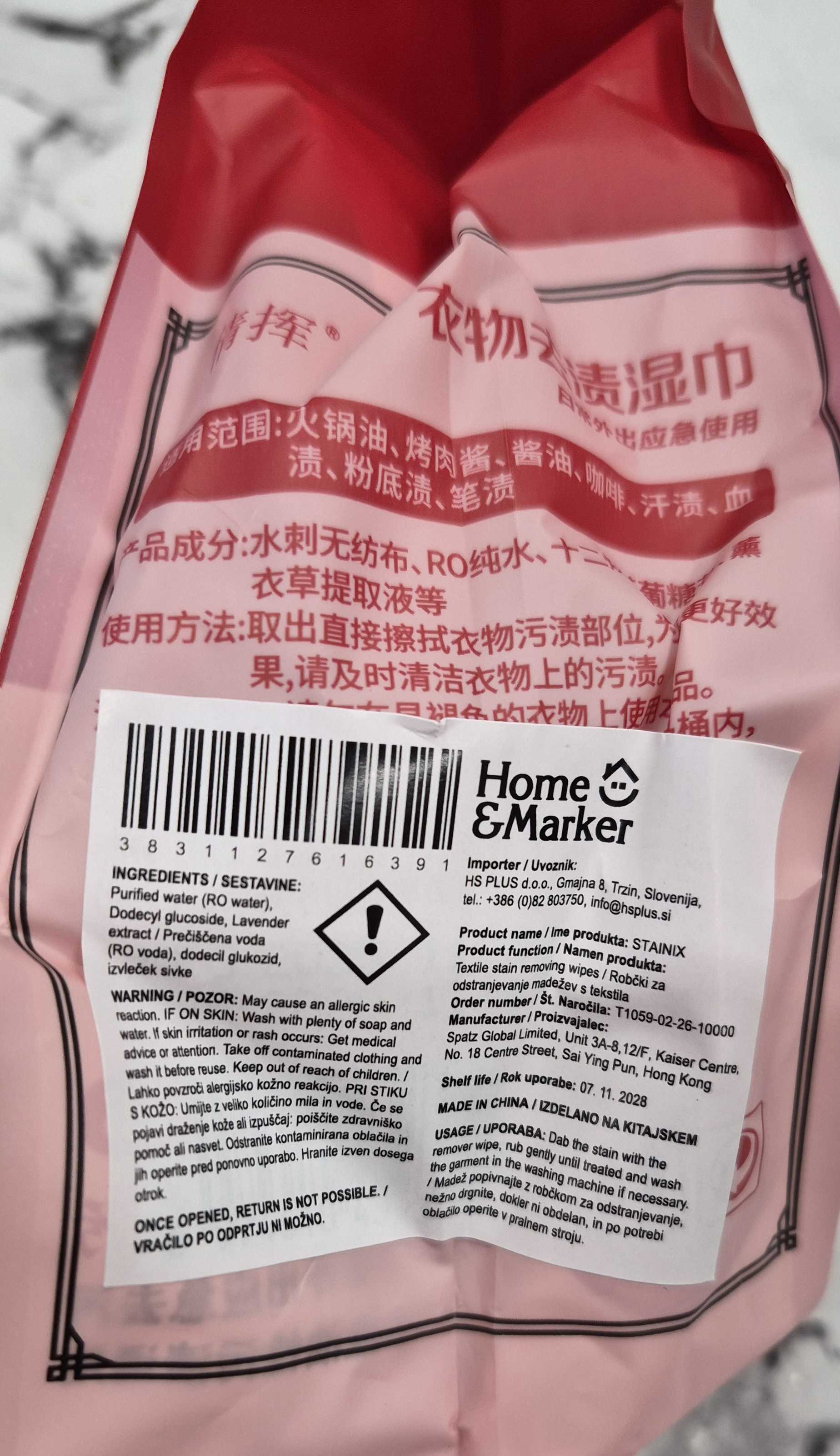1x Paket učinkovitih vlažnih robčkov za odstranjevanje madežev | STAINIX