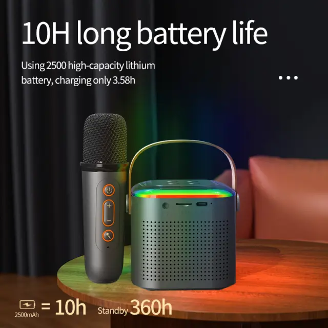 Dolgotrajna baterija: Z dolgotrajno baterijo Y1 bo zabava trajala dlje. Mikrofon zagotavlja 3-4 ure neprekinjene uporabe, medtem ko se zvočnik ponaša z impresivno kapaciteto baterije, kar zagotavlja neprekinjeno zabavo več ur.