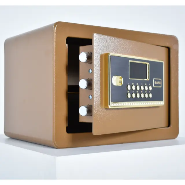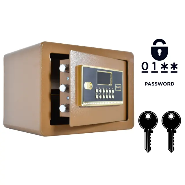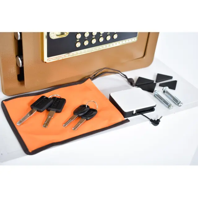 Oklepeni domači sef NIKCROP Double Lock-25 predstavlja zanesljivo rešitev za varno shranjevanje vaših dragocenosti, dokumentov in osebnih predmetov v domačem ali pisarniškem okolju. Izdelan je iz kakovostnega hladno valjanega jekla, ki zagotavlja visoko stopnjo odpornosti na zunanje vplive in mehanske poškodbe. Njegova kompaktna zasnova omogoča diskretno postavitev, hkrati pa nudi dovolj prostora za organizirano hrambo različnih vrednosti. S kombinacijo sodobne tehnologije in klasične varnosti se ta sef prilagaja potrebam vsakega uporabnika, ki išče mir in zaščito premoženja.