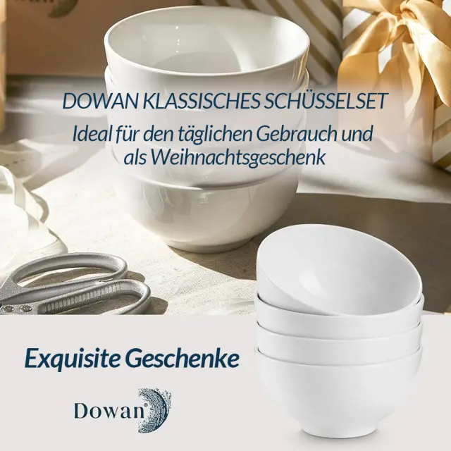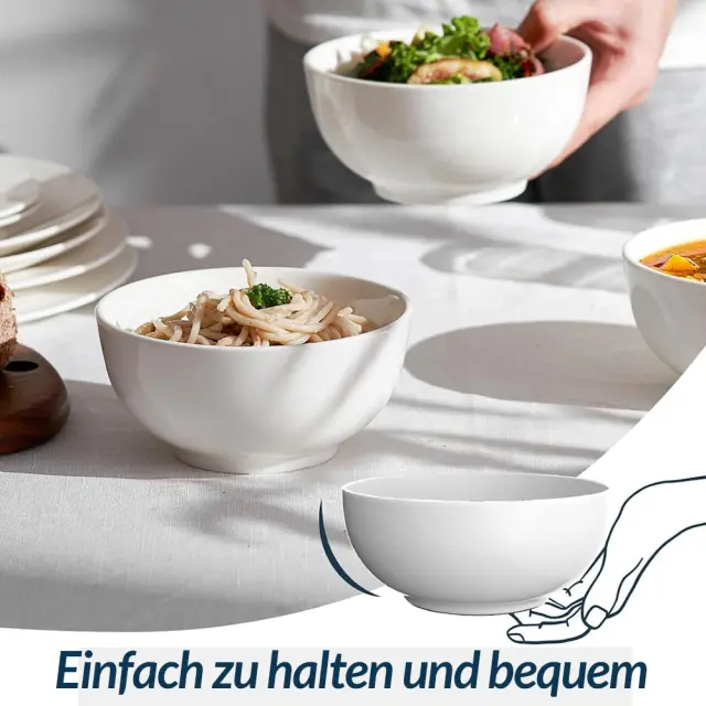 Vsestranska velikost: Globok in klasičen komplet posod s prostornino 651 ml je idealen za kosmiče, juho, oreščke, solato, sadje, riž in testenine brez polivanja. Idealno za družinske večerje, shranjevanje hrane, ovseno kašo za zajtrk, postrežbo v restavracijah, zabave in praznična darila. Varno za živila: Za razliko od posod za enkratno uporabo in plastičnih posod je vsaka keramična skleda DOWAN izdelana iz visokokakovostnega porcelana in je podvržena dvema visokotemperaturnima žganjema pri 1280 stopinjah. To preprečuje vdor škodljivih snovi v vašo hrano. Lahke in trpežne: keramične sklede DOWAN so na voljo v prostorsko varčnem slogu in dizajnu z gladkimi, zaobljenimi robovi. Prav tako jih otroci lahko enostavno držijo. Super trpežna in odporna proti lomljenju z vzdržljivim materialom, ki preprečuje vpijanje vlage. Enostavno shranjevanje in čiščenje: Brez težav se zlaga in sprosti dovolj prostora za druge komplete posode v kuhinjski omari ter ustreza večini obstoječega namiznega pribora. Gladka in proti praskam odporna glazirana notranjost je enostavna za čiščenje. Prenesejo vročino, bodisi v pomivalnem stroju, mikrovalovni pečici, zamrzovalniku ali pečici. Brezčasna klasika: Te bele sklede z gladko porcelanasto površino se ponašajo z elegantnim in brezčasnim dizajnom. S svojo mešanico praktičnosti in stila so te sklede nepogrešljiv dodatek k dekorju vaše kuhinje.