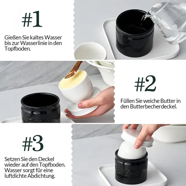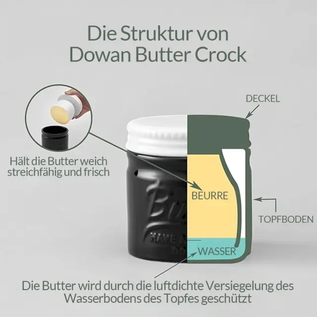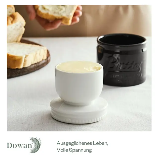 【Uživajte v veselju mehkega in svežega masla】Poslovite se od hladnega, trdega masla naravnost iz hladilnika! Naša francoska posoda za maslo z vodnim tesnilom ohranja svežino in maslo brez hlajenja. Gladko, kremasto maslo iz našega lončka namažite na kruh, toast, vaflje ali žemljice. Uživajte v udobju mehkega masla pri sobni temperaturi, kadar koli želite! 【VELIKA PROSTORNINA IN ENOSTAVNA UPORABA】 Posoda za maslo DOWAN ima dovolj prostora za 1 1/2 palčke masla, vključno z domačim maslom. Gladina vode je označena s črno vodno črto, ki zagotavlja, da je vode dovolj. Ploska zasnova pokrova olajša mazanje masla. Lahko ga stabilno postavite na mizo, da imate proste roke. 【ČARLJIVO OBLIKOVANJE V KMEČKEM STANJU】Francoski lonec za maslo ima čudovit starinski zidarski dizajn, ki poudari lepoto katere koli kuhinje, pulta ali jedilne mize. Prav tako je odlično darilo za vselitvene zabave, poroke, rojstne dneve in dekoracijo doma. 【TRPEŽEN IN VAREN PORCELAN】 Naša posoda za maslo z delujočim pokrovom je izdelana iz trpežnega porcelana in je narejena za dolgo življenjsko dobo. Ta visokokakovosten material brez svinca je odporen proti krušenju in močnejši od kamnite keramike. Naša posoda za maslo je trpežna in varna za uporabo v zamrzovalniku in pomivalnem stroju. 【PRAVILNA UPORABA POSODE ZA MASLOTO】Pred uporabo se prepričajte, da je pokrov čist in suh. Premehko maslo je najpogostejši razlog, da maslo pade v vodo. Da bi to preprečili, maslo s hrbtno stranjo žlice močno pritisnite v lonec. Priporočljivo je, da hladno ustekleničeno ali filtrirano vodo osvežite vsakih 1-2 dni. (OPOMBA: Če v vodo dodate majhno količino soli ali kisa, boste ohranili svežino masla.)