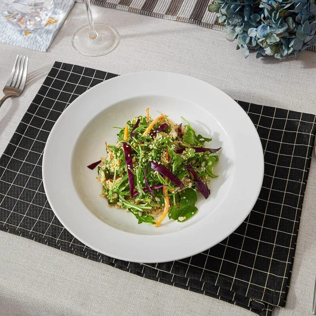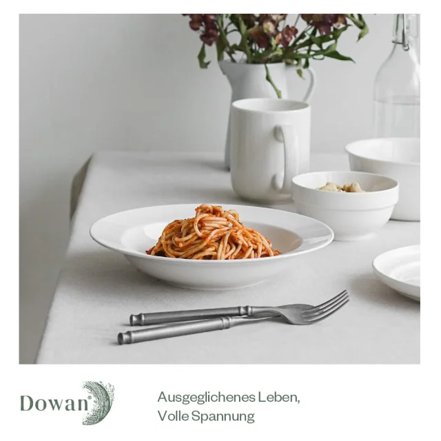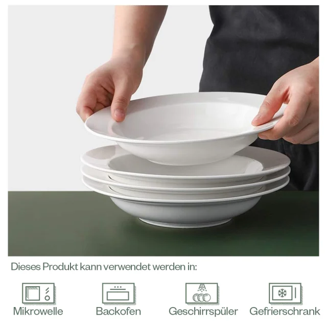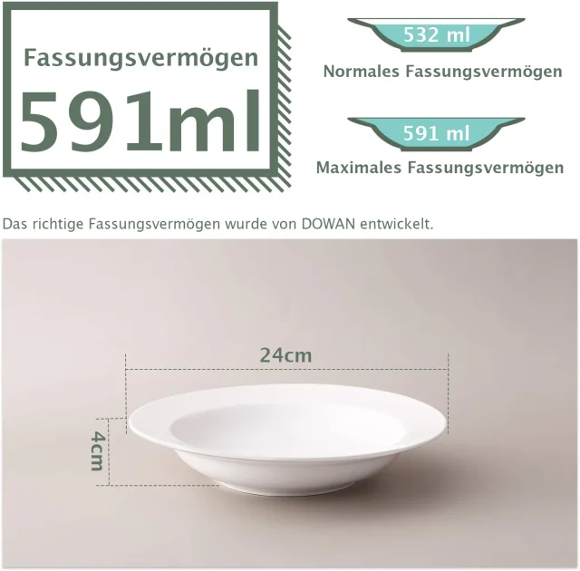 DOWAN sklede za juho, sklede za testenine, bele sklede za solato, komplet 4, široke porcelanske sklede, 591 ml, primerne za mikrovalovno pečico in pom