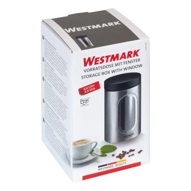 WESTMARK DOZA Z OKNOM s prostornino 950 ml je idealna za shranjevanje suhih živil kot so kava, moka, sladkor, testenine, riž itd. Brezčasna okrogla posoda za shranjevanje je izdelana iz nerjavečega jekla, praktičen pokrov dobro tesni ter se enostavno odpira in zapira, praktično antistatično okno pa omogoča vpogled v posodo.