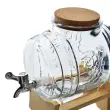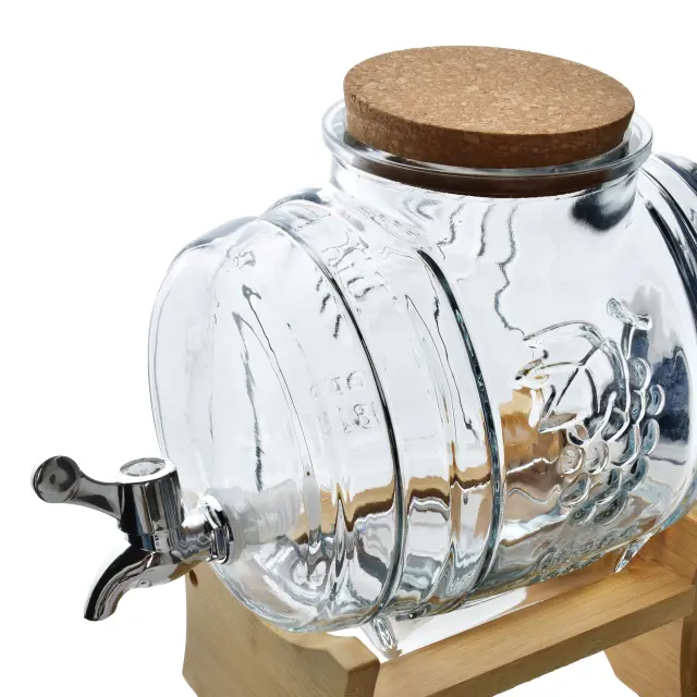 Dozator je nameščen na stabilnem lesenem stojalu, ki ga dvigne na priročno višino in olajša polnjenje kozarcev tudi, ko je miza polna. Široka odprtina omogoča udobno polnjenje (tudi z dodatki, kot so sadje ali led) ter lažje čiščenje. Primeren je za limonado, vodo z dodatki, ledeni čaj in druge domače pijače.