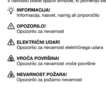 Slike o varnosti izdelka vsebujejo opozorila na embalaži izdelka in lahko vključujejo ključne varnostne informacije, povezane z določenim izdelkom.