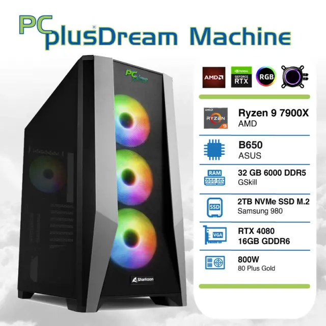 PCPLUS Dream Machine Ryzen 9 7900X 32GB 2TB NVMe SSD GeForce RTX 4080 16GB gaming namizni računalnik