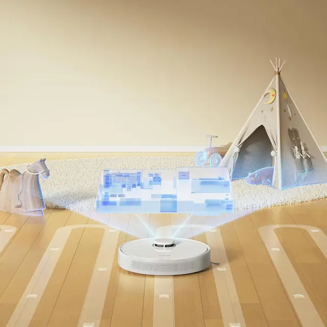 D9 Max Gen 2 ustvari prilagodljiv zemljevid za natančno čiščenje, kar zagotavlja gladko gibanje in optimalne poti čiščenja po vašem domu.