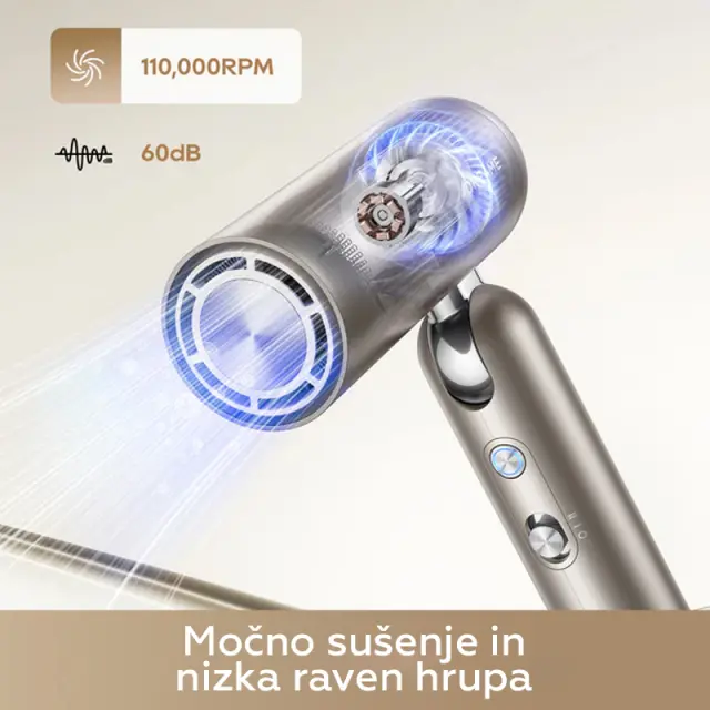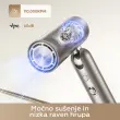 Sušilnik vključuje dva različna nastavka, ki omogočata ravnanje in kodranje las.