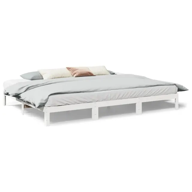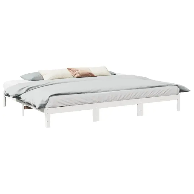 Družinski Posteljni okvir - Dvoposteljna postelja - Zakonska postelja brez ležišča masivni les bor Bela