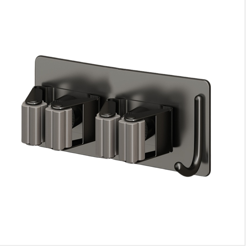 Varen oprijem & kavlji: To držalo za brisače ima močno, vzmetno sponko, ki varno drži ročaje brisač in metel različnih debelin. Integrirani kavlji zagotavljajo dodatno shranjevanje za krpe, ščetke ali druge čistilne pripomočke. To zagotavlja, da so vsi vaši čistilni pripomočki lepo organizirani in lahko dostopni, kar naredi vašo rutino čiščenja učinkovitejšo.