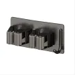 Prostor za shranjevanje: Izkoristite svoj prostor za shranjevanje s tem stenskim držalom za brisače in metle. Njegova kompaktna zasnova ohranja vaša čistilna orodja organizirana in dvignjena od tal, kar sprosti dragocen prostor v vaši pralnici, garaži ali pomožnem prostoru. Elegantna siva barva dodaja pridih modernega sloga vsakemu prostoru, hkrati pa zagotavlja praktično rešitev za shranjevanje.