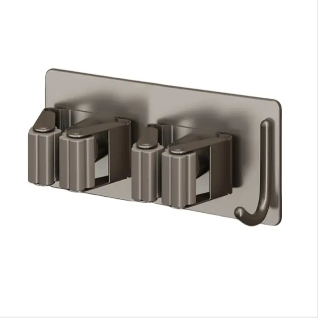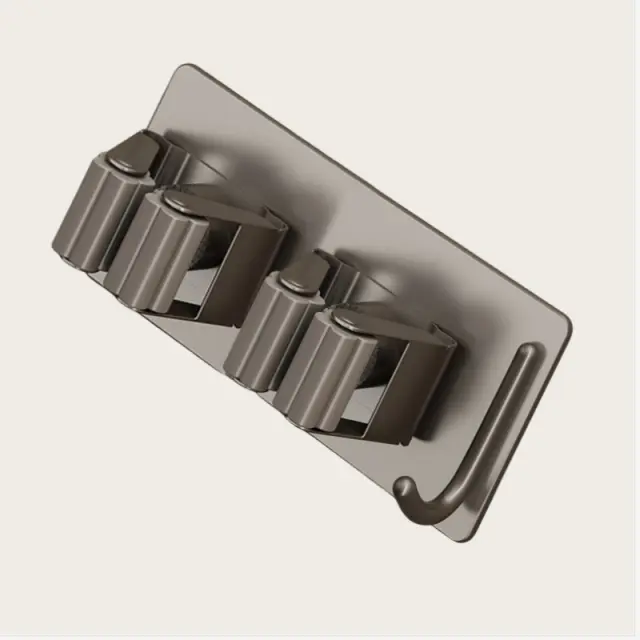 Varen oprijem & kavlji: To držalo za brisače ima močno, vzmetno sponko, ki varno drži ročaje brisač in metel različnih debelin. Integrirani kavlji zagotavljajo dodatno shranjevanje za krpe, ščetke ali druge čistilne pripomočke. To zagotavlja, da so vsi vaši čistilni pripomočki lepo organizirani in lahko dostopni, kar naredi vašo rutino čiščenja učinkovitejšo.
