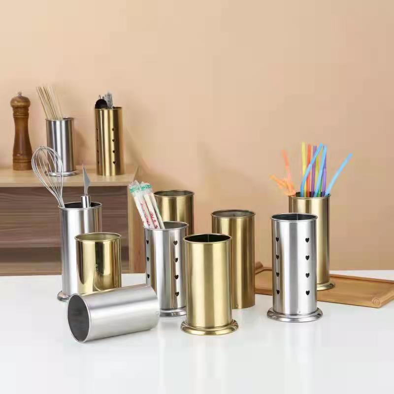 Eleganten zaključek: Ta držalec za jedilni pribor se ponaša z razkošnim zaključkom, ki doda pridih prefinjenosti vsaki kuhinji ali jedilnici. Njegova polirana zunanjost lepo odseva svetlobo in ustvarja toplo in prijetno vzdušje.