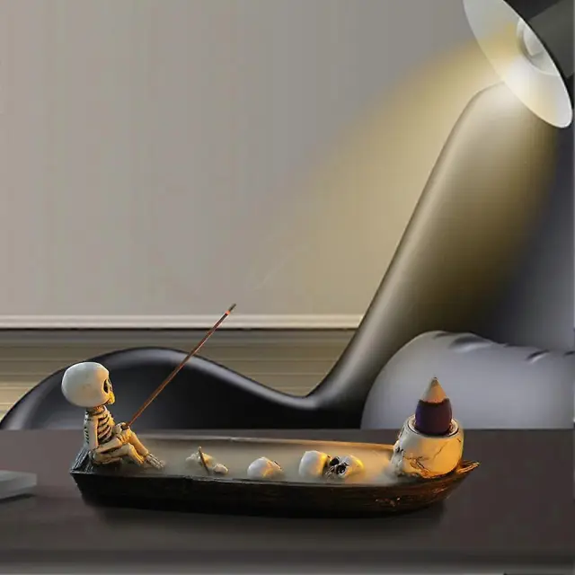Držalo za kadilo za čoln z lobanjo - gotski ribolov duhov na kadilnici za kadilo za noč čarovnic