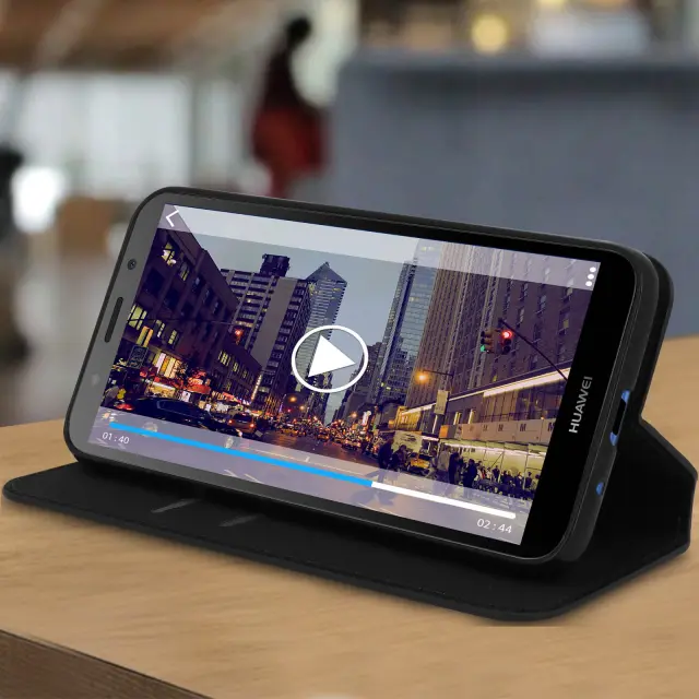 Držalo za kartice in stojalo za video na preklopni ovitek - crna str. Huawei Y5 2018 in Honor 7S
