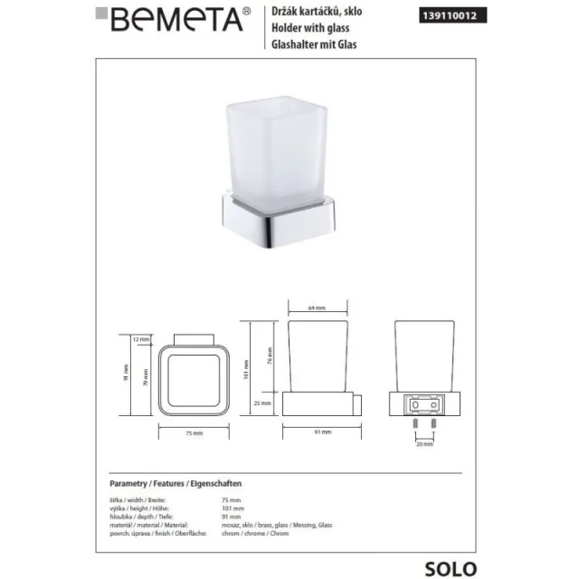 Držalo za kozarce SOLO iz kromirane medenine in stekla 7,5 x10,1 x9,1 cm