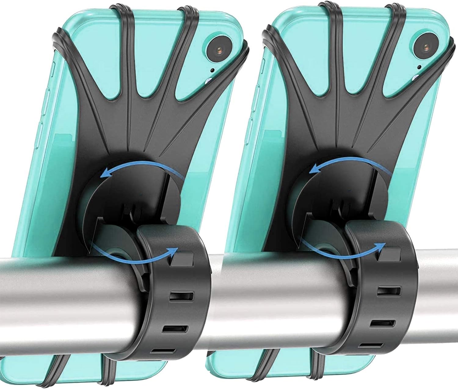 Držalo za mobilni telefon, kolo, 2 paketa, 360° vrtljivo silikonsko držalo za telefon za kolo, univerzalno stojalo za noge