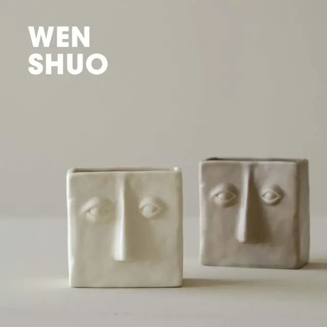 Držalo za pisalo z abstraktnim kvadratnim obrazom, sodoben minimalističen namizni dodatek, mat krem barve