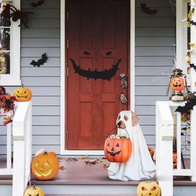 Držalo za skledo za sladkarije Ghost Dog, stojalo za sladkarije za noč čarovnic, skleda za trik ali poslastico, primerna za notranjo dekoracijo miz