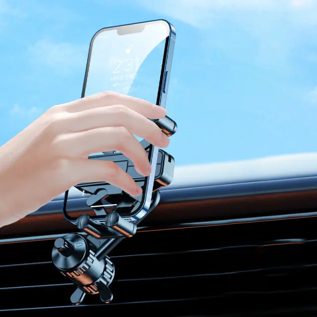 Stabilen in varen oprijem: To držalo za telefon za avto zagotavlja stabilen in varen oprijem za vaš telefon, kar zagotavlja, da ostane na mestu tudi na neravnih cestah. Kombinacija materialov ABS, aluminijeve zlitine in silikona zagotavlja močan oprijem in preprečuje praske na vaši napravi.