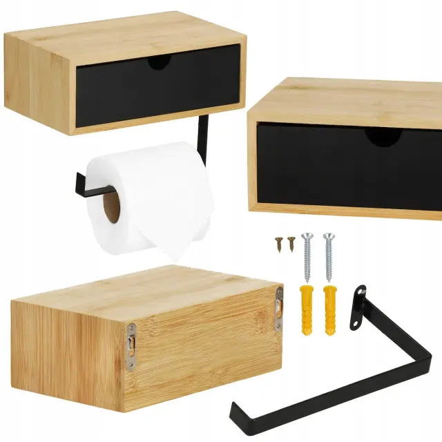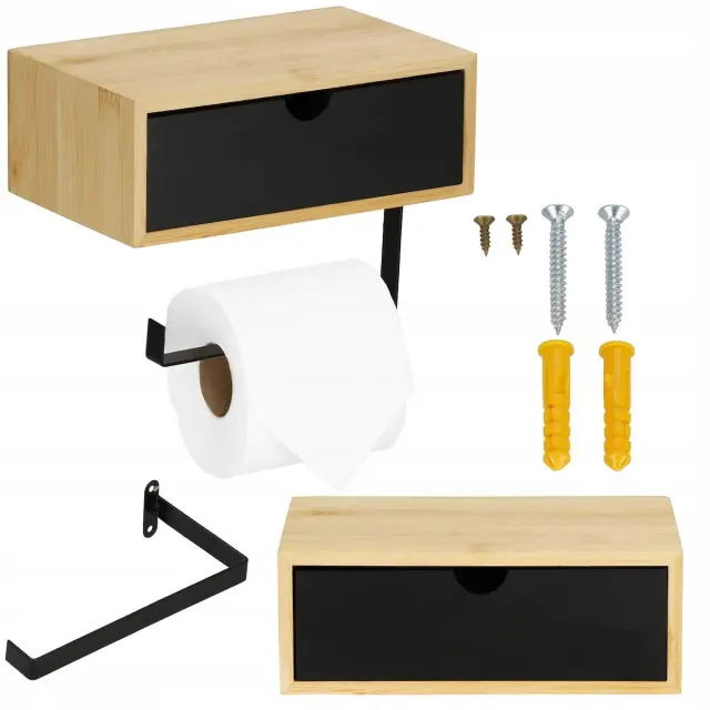 Držalo za toaletni papir S POLIČKO ZA TELEFON IN kovinskim WC predalom 3v1