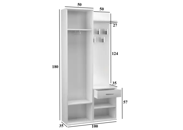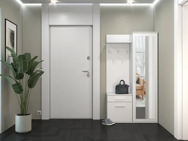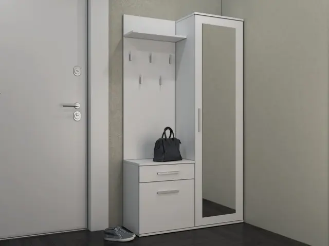 • Omaro z ogledalom, omarico in obešalnik lahko namestite blizu drug drugega ali jih odmaknete.