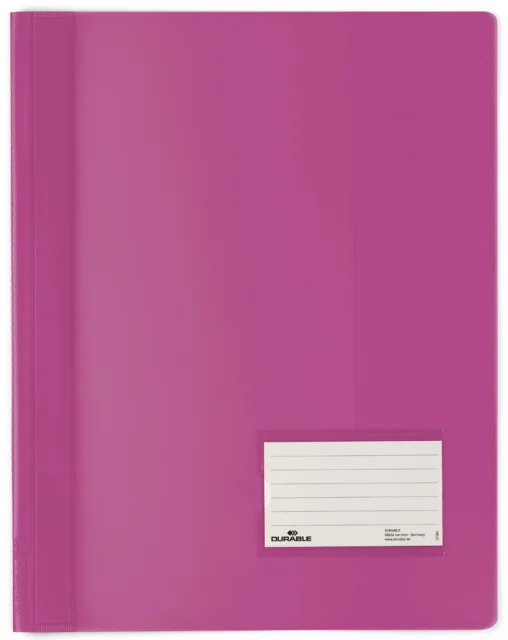 PVC, ekstra širok, iz prevlečene folije, sprednja platnica z okencem za etikete v formatu vizitke (90 x 57 mm), prozoren notranji žep na zadnji platnici (268034) Pomembni podatki: Izvedba: PVC Format: A4 čez širino Barva: temna roza Širina embalaže v mm