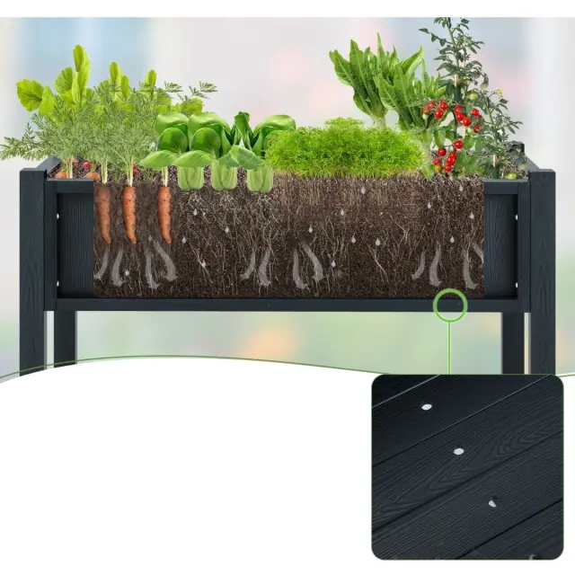 Učinkovit drenažni sistem: dvignjena greda je opremljena z 12 predvrtanimi drenažnimi luknjami, ki pomagajo odvajati odvečno vodo in preprečujejo gnitje korenin, da lahko vaše rastline brez težav dihajo in rastejo polne vitalnosti.