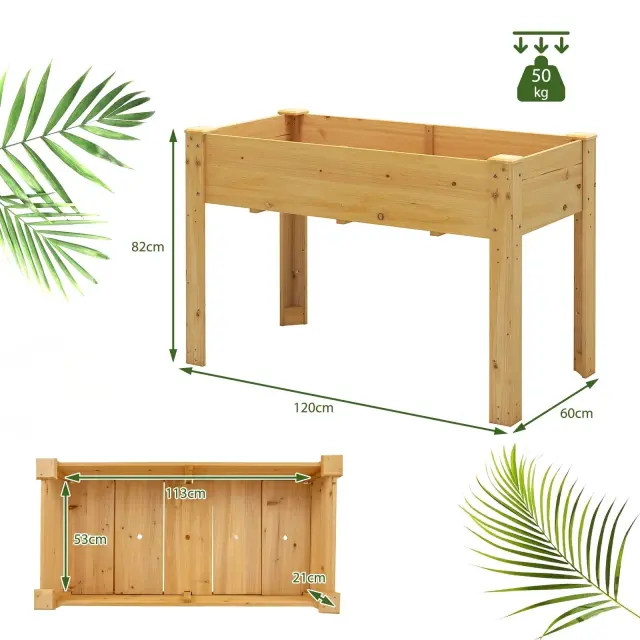 Struktura iz smrekovega lesa: dvignjeno cvetlično korito je izdelano iz smrekovega lesa in premazano z barvo na vodni osnovi, zato je stabilno in odporno na deformacije. Poleg tega je ojačana s podpornimi palicami in debelimi nogami, ki zagotavljajo boljšo porazdelitev teže in večjo stabilnost.